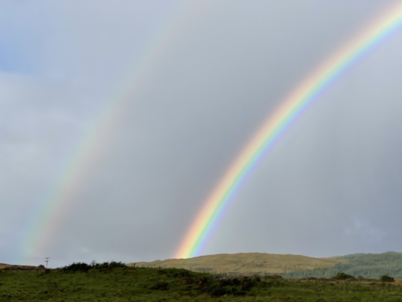 With not much more on our schedule for the day, we had lunch at the Bowmore Hotel. If you have a chance, you must stop in. The display of scotch is awe-inspiring. We were able to grab a late afternoon nap and then hiked most of the Three-distillery hike, where we saw three more rainbows. Finally, we had a small dinner at the Islay Hotel’s bar. The food is so good. No 1 Charlotte Street is where we like to end the night. The tiny little pub is attached to a Bed and Breakfast. The bartender, Ann, is charming and provides good information. I talked to her about the rainbows, and she mentioned she had seen white rainbows.