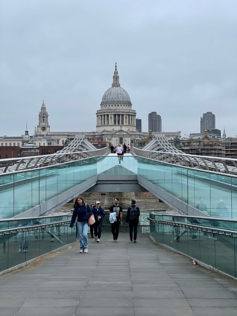 With no goal, we zigged the river, enjoying the walks over the bridges. Finally, we made it down to the Millennium bridge, one of my favorites. It’s a pedestrian bridge with a grand view of St. Paul’s cathedral. Since we were right there, we decided to visit St. Paul’s Cathedral, but it was closed due to filming. So we continued towards Covent Garden, where we had lunch and did some final shopping. With that, we headed back to the hotel to get ready for our last evening.